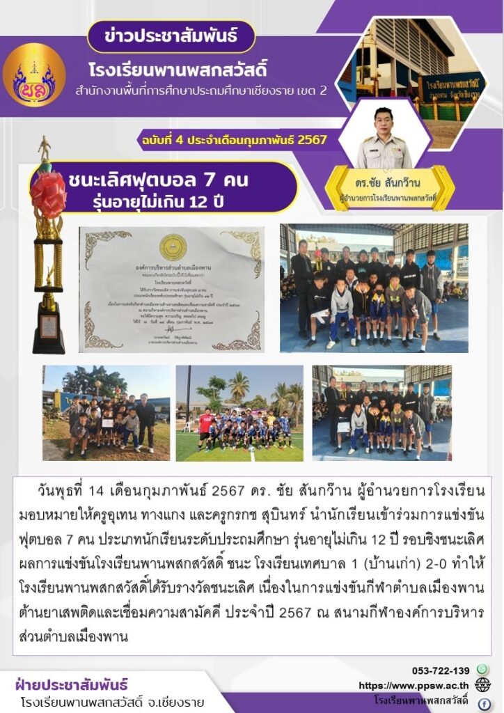 • ชนะเลิศฟุตบอล 7 คน ประเภทนักเรียนระดับประถมศึกษา