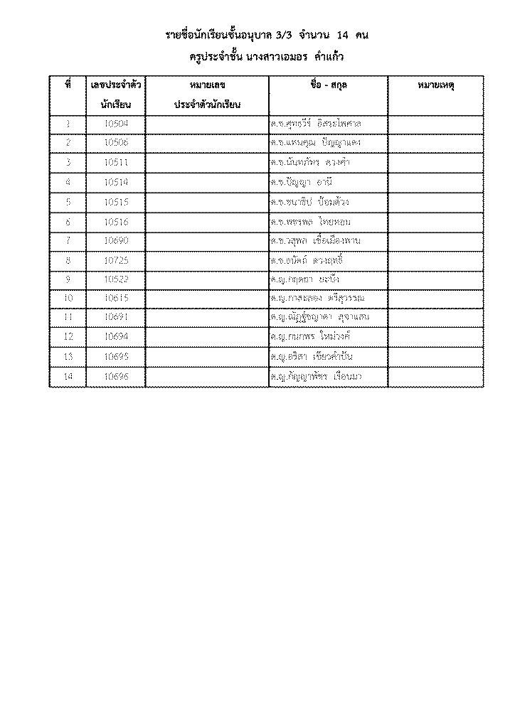 • รายชื่อนักเรียนชั้น ป.3 ภาคเรียน 1/2568