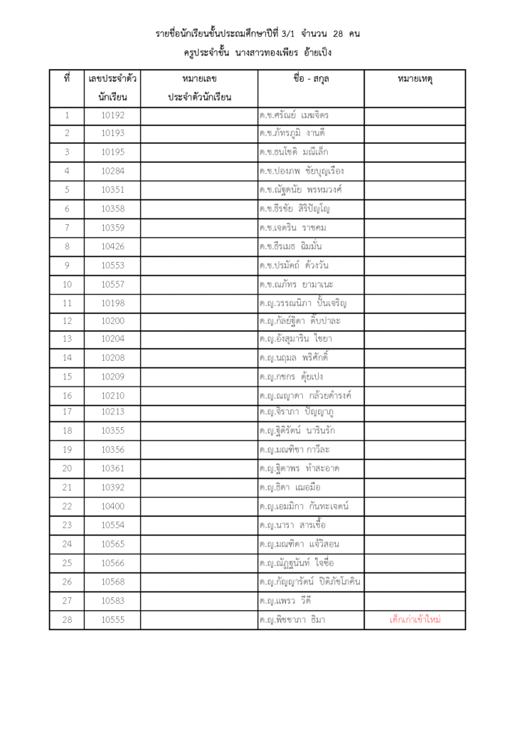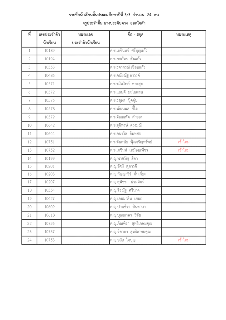 • รายชื่อนักเรียนชั้น ป.3 ภาคเรียน 1/2568