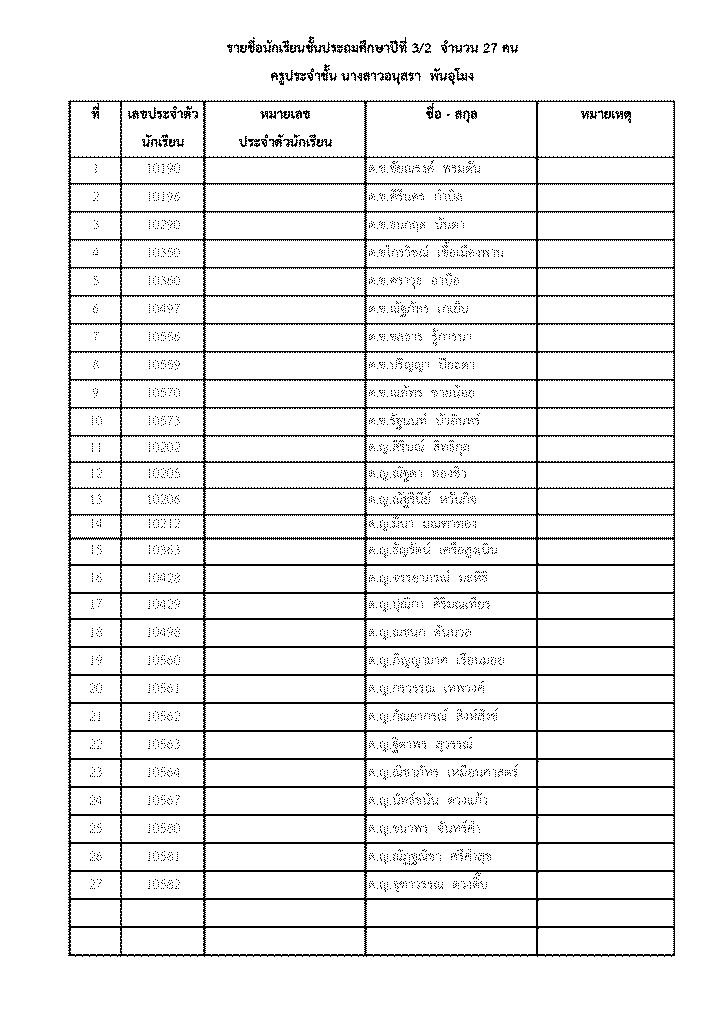 รายชื่อนักเรียนชั้น ป.3 ภาคเรียน 1/2568