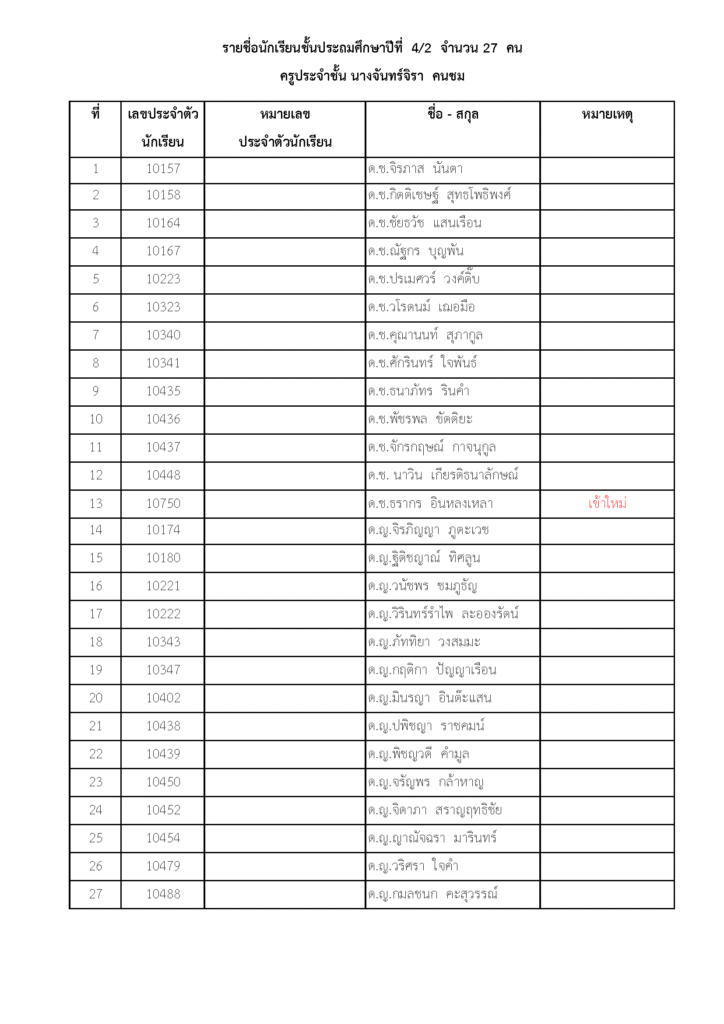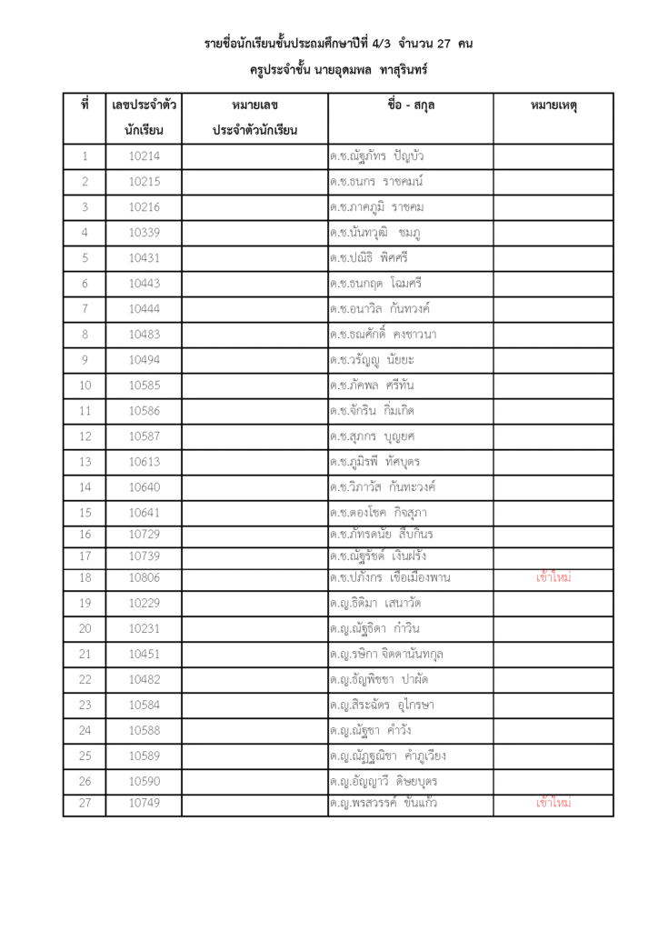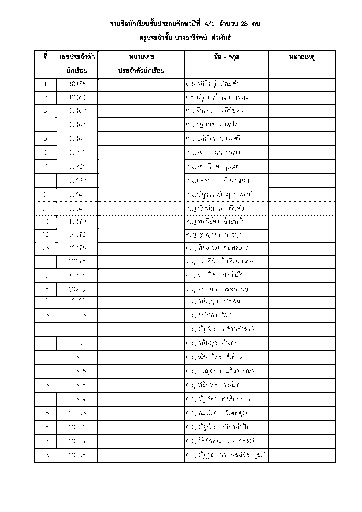 • รายชื่อนักเรียนชั้น ป.4 ภาคเรียน 1/2568