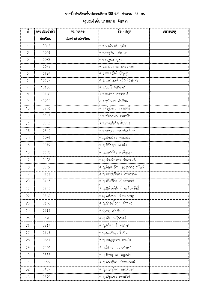 รายชื่อนักเรียนชั้น ป.5 ภาคเรียน 1/2568