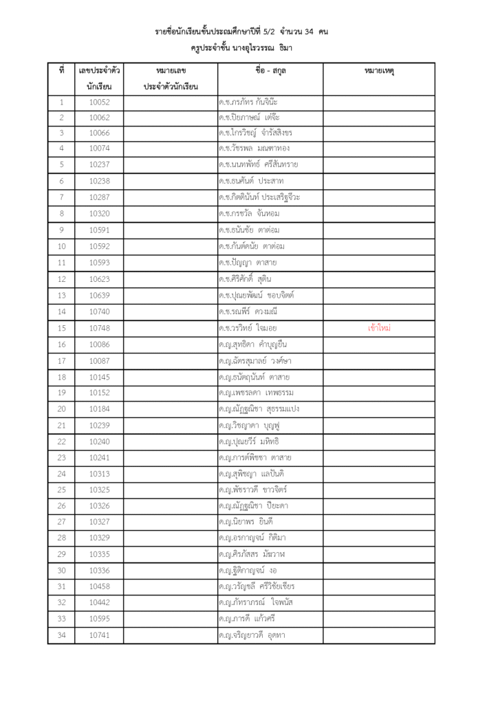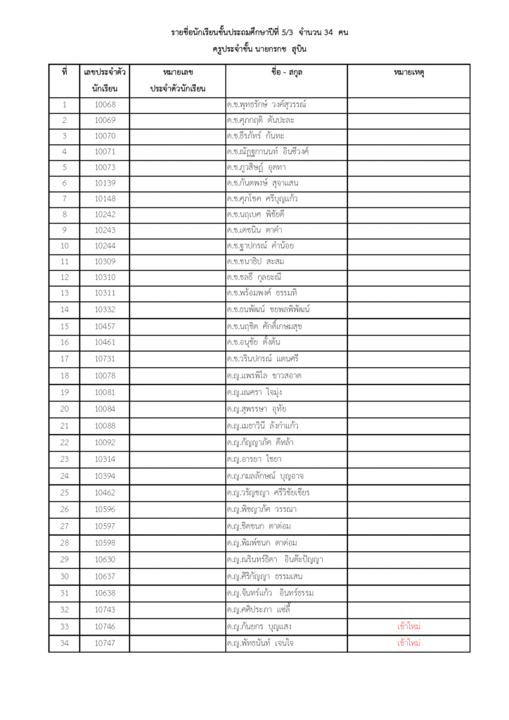 • รายชื่อนักเรียนชั้น ป.5 ภาคเรียน 1/2568